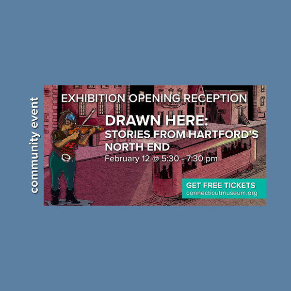 Join the Connecticut Museum of Culture and History in an exploration of Hartford’s North End migration history and culture. Drawn Here: Stories from Hartford’s North End highlights a series of graphic novels developed by local students and professional artists to share the “experiences of the Irish, Italians, Eastern Europeans, Black Southerners, West Indians, Puerto Ricans, and others who have made the neighborhood their home, whether briefly or for generations, [adding] nuance and depth to our understanding of what it means to be American.”