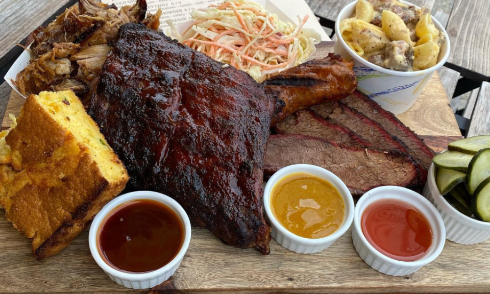 En una zona conocida principalmente por sus mariscos, Noble Smokehouse ofrece una alternativa para quienes prefieren la carne, con platos ahumados como costillas de cerdo, salchichas, falda de res, cerdo desmenuzado, pavo y pollo. Sus salsas caseras abarcan las mejores regiones de barbacoa del país, como la agridulce de Kansas City, las salsas a base de vinagre y mostaza de Carolina del Norte y del Sur, y la salsa blanca de Alabama a base de mayonesa.