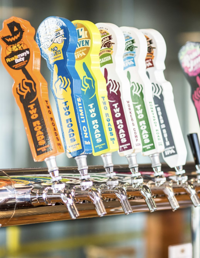 Two Roads Brewing Company, en Stratford, promueve una filosofía de "camino menos transitado" tanto en sus cervezas como en su proceso de elaboración. Con ese espíritu, Phil Markowski, su galardonado maestro cervecero y veterano de la cerveza artesanal, ha creado una extensa gama de cervezas populares que dan un toque único a los estilos clásicos (entre las más conocidas se encuentran Road 2 Ruin, No Limits y Two Juicy). Two Roads fue nombrada una de las diez mejores cervecerías de Estados Unidos por la revista Paste y ha ganado numerosos premios. Visita cualquiera de sus salas de degustación.