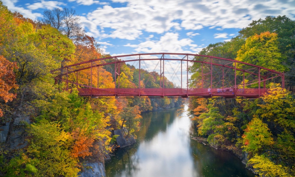 Escondido entre las colinas a pocos kilómetros de la frontera con Nueva York, el pueblo de New Milford cuenta con una plaza tradicional y un pintoresco mirador. Alójese en el encantador Homestead Inn y planifique su visita incluyendo una caminata en el Parque Estatal Lovers Leap y una excursión a la cervecería Housatonic River Brewing, ubicada a orillas del pintoresco río Housatonic.