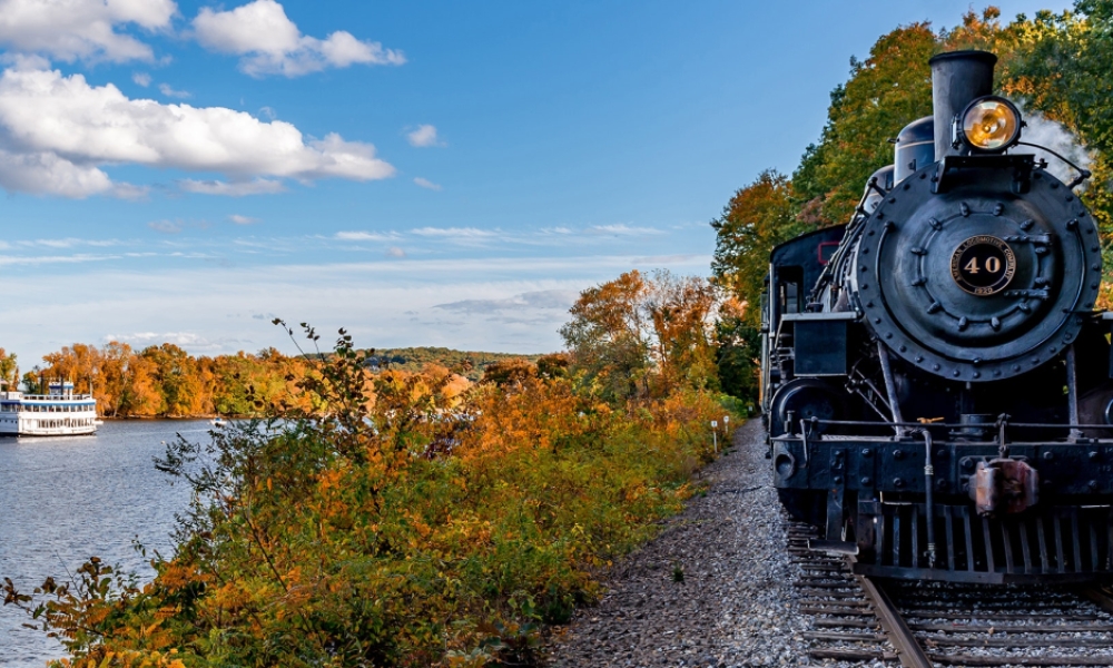 Una de las mejores maneras de disfrutar del paisaje de Connecticut es a bordo de uno de los muchos trenes que hacen que viajar sobre raíles sea un verdadero placer. Todos ellos evocan una época pasada en la que el ritmo de vida era más pausado y el viaje en sí mismo era parte de la diversión. Y si algún miembro de la familia es aficionado a los trenes, la emoción se multiplicará.