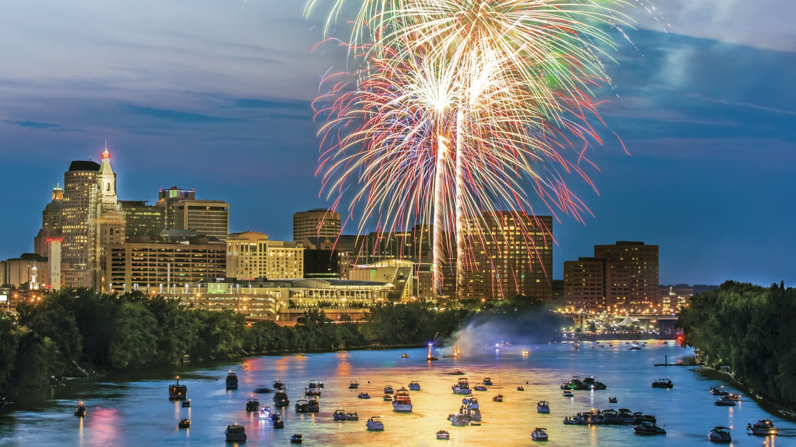 La ciudad de Manchester celebra el 250 aniversario de la independencia de Estados Unidos con espectáculos y música en vivo, puestos de comida y vendedores locales, actividades y juegos para toda la familia, y un gran espectáculo de fuegos artificiales al anochecer.