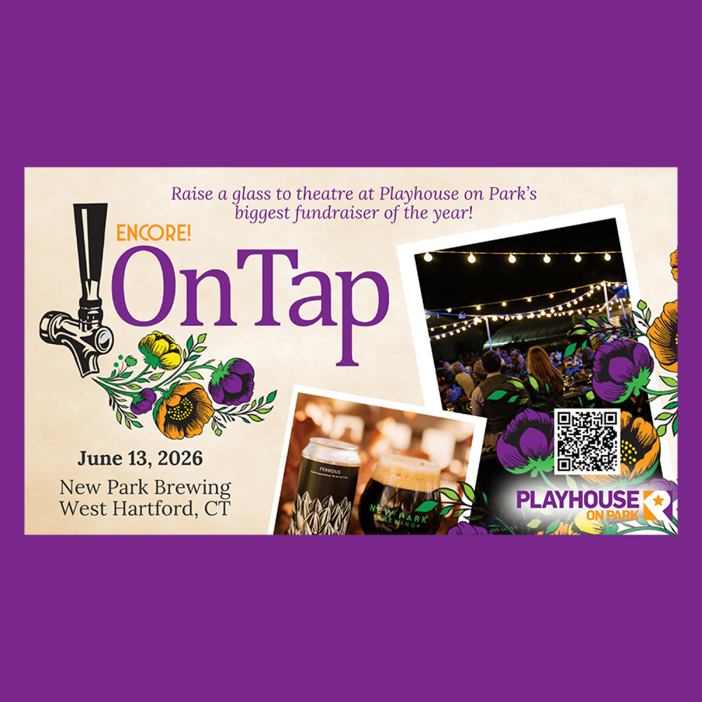 ¡Brindemos! Estamos encantados de traer Encore! a West Hartford y de restablecer nuestra colaboración con dos empresas increíbles. Este año, visitaremos la galardonada cervecería New Park Brewing, con comida de DORO Catering & Events y el apoyo adicional de Taylor Rental. ¡Este año será realmente "DE BARRIL"!