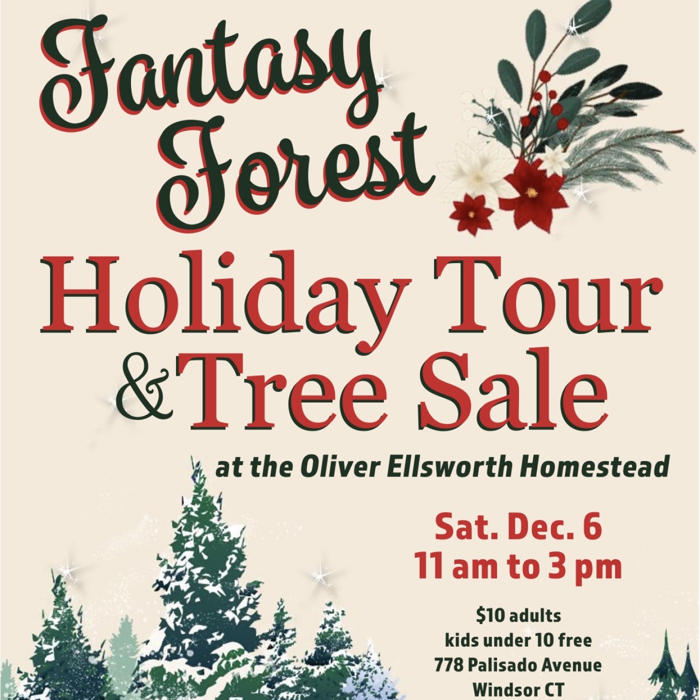 Adéntrate en un bosque mágico estas fiestas en la histórica Casa Museo Oliver Ellsworth, bellamente decorada para Navidad. Disfruta de una visita autoguiada por las festivas estancias de esta joya del siglo XVIII, cada una adornada con deslumbrantes guirnaldas y árboles de Navidad, disponibles para su compra y para llevarte a casa un pedacito de historia y espíritu navideño. Los árboles y guirnaldas se pueden recoger a partir de las 15:00.