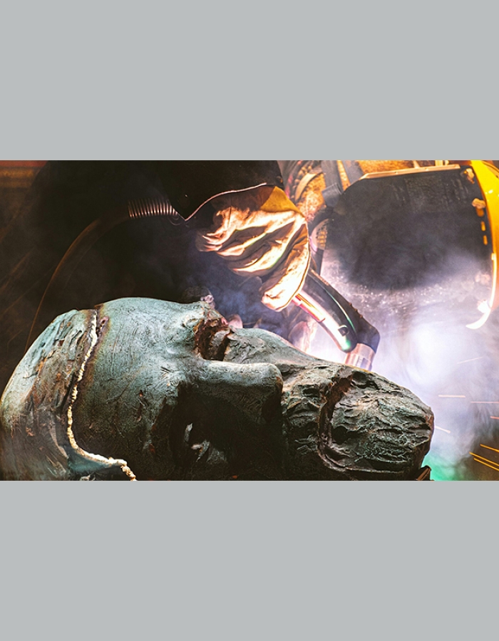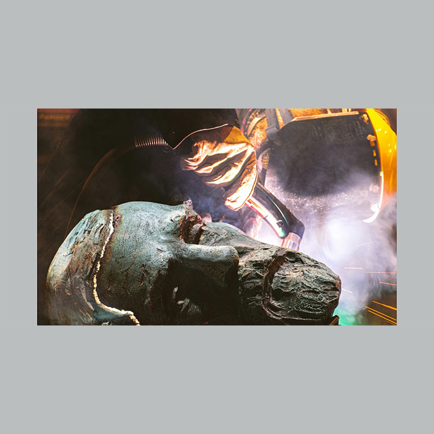 Imagen: Cabeza de Robert E. Lee en proceso de fundición, del grupo de estatuas originalmente ubicado en Monument Avenue, Richmond, Virginia. Crédito: Eze Amos/For Swords into Plowshares