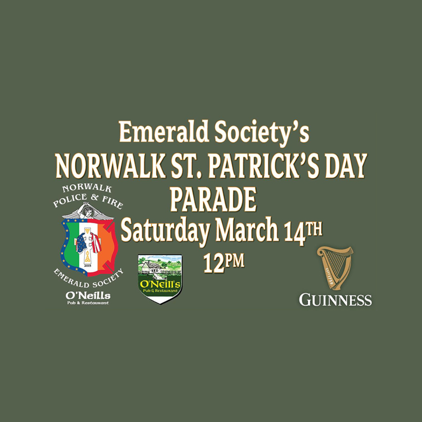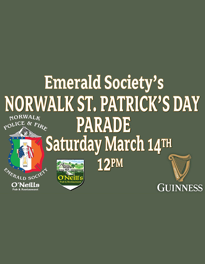 El Desfile del Día de San Patricio de Norwalk es presentado por la Sociedad Esmeralda de la Policía y los Bomberos de Norwalk y patrocinado por Guinness