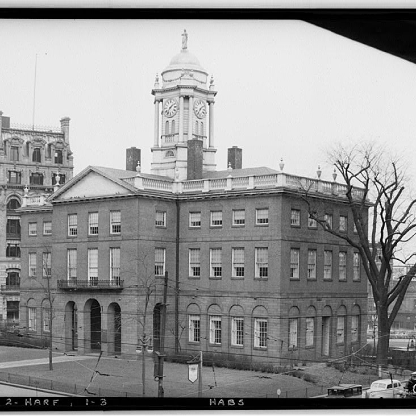 Imagen: Encuesta de Edificios Históricos Americanos Everett H. Keeler, fotógrafo 1 de marzo de 1937 ELEVACIÓN SUROESTE – Antigua Casa del Estado, Main Street y Central Row, Hartford, Condado de Hartford, CT. https://www.loc.gov/pictures/item/ct0098.photos.023098p/