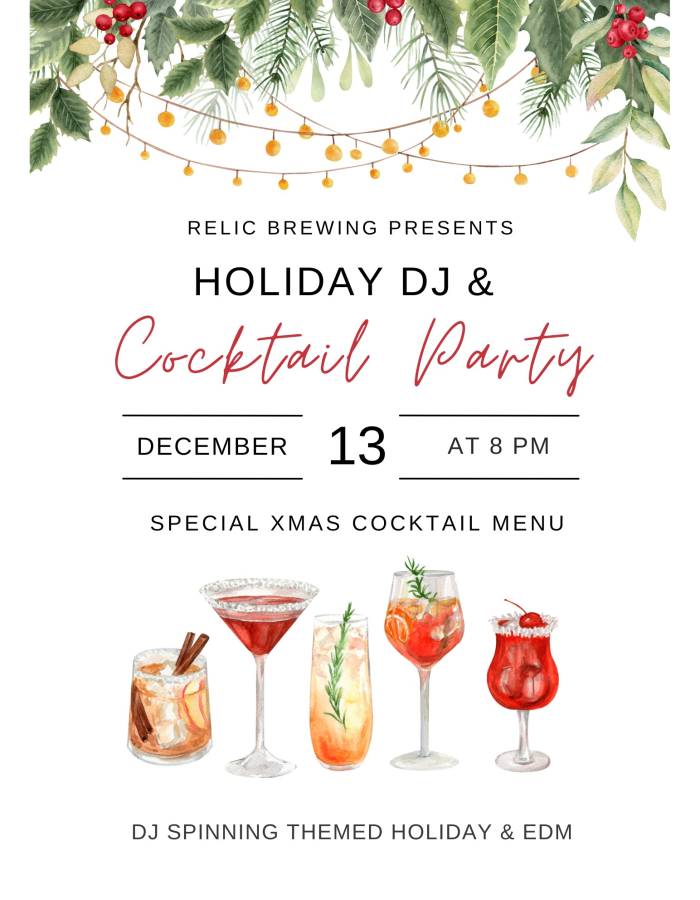 Únase a nosotros para una noche de música navideña animada con DJ y ambiente EDM de fondo combinado con un menú completo de cócteles navideños personalizado solo para la fiesta (lo publicaremos más cerca del evento).
