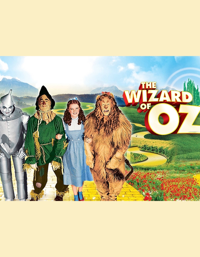 Cuando un tornado azota Kansas, Dorothy (Judy Garland) y su perro, Toto, son llevados en su casa al mágico mundo de Oz. Recorren el Camino de Baldosas Amarillas hacia la Ciudad Esmeralda para encontrarse con el Mago, y en el camino se topan con un Espantapájaros (Ray Bolger) que necesita un cerebro, un Hombre de Hojalata (Jack Haley) sin corazón y un León Cobarde (Bert Lahr) que busca coraje. El mago les pide al grupo que le traigan la escoba de la Malvada Bruja del Oeste (Margaret Hamilton) para conseguir su ayuda.