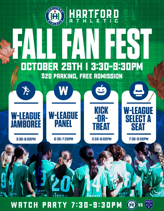 Celebre el futuro del fútbol femenino en Hartford en nuestro primer Festival de Otoño para Fans el sábado 25 de octubre en el Estadio Trinity Health. Ven con toda la familia a disfrutar de un día centrado en nuestro equipo de la Liga Atlética Hartford W-League, que llegará en 2026, con divertidas festividades familiares, una fiesta futbolística y una fiesta para ver el partido. Sintonice el panel de la Liga W-League para conocer al entrenador oficial.