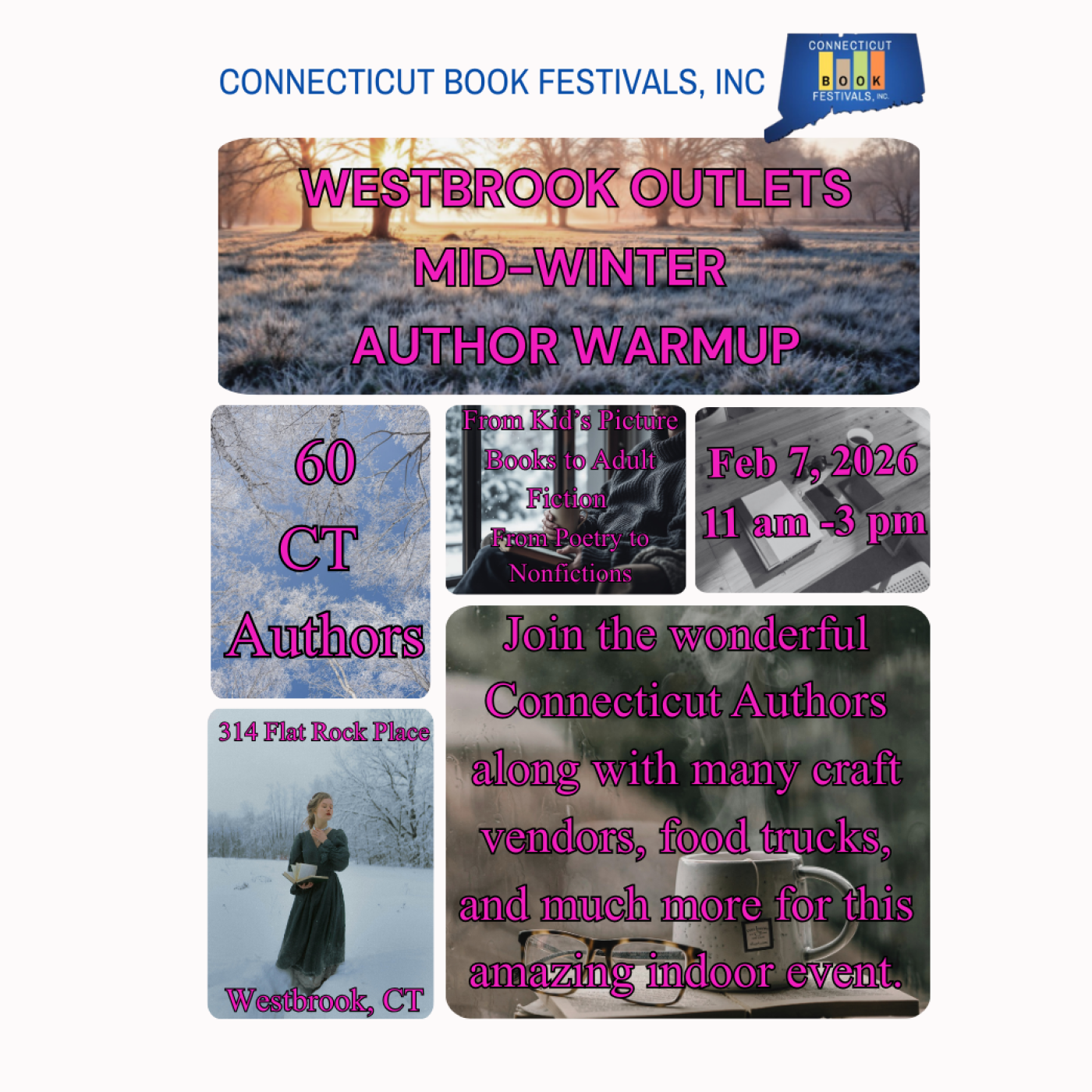 Festivales del Libro de Connecticut Westbrook Outlets Calentamiento de Autores de Mitad de Invierno