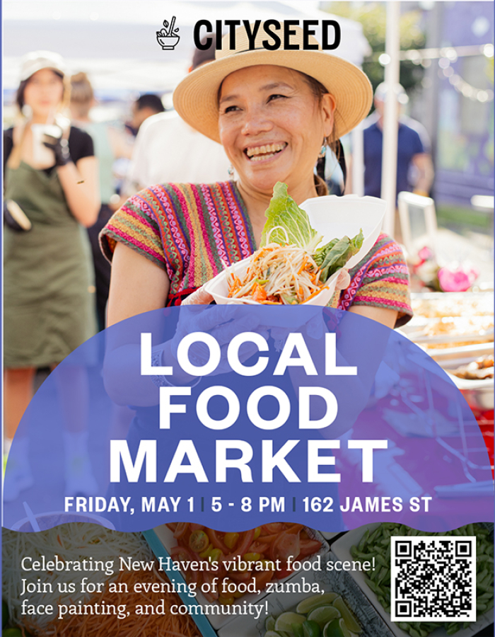 El mercado de alimentos locales de CitySeed regresa el viernes 1 de mayo, de 17:00 a 20:00, para celebrar la vibrante y diversa comunidad gastronómica de New Haven. El evento tendrá lugar en el edificio de CitySeed, ubicado en 162 James Street.