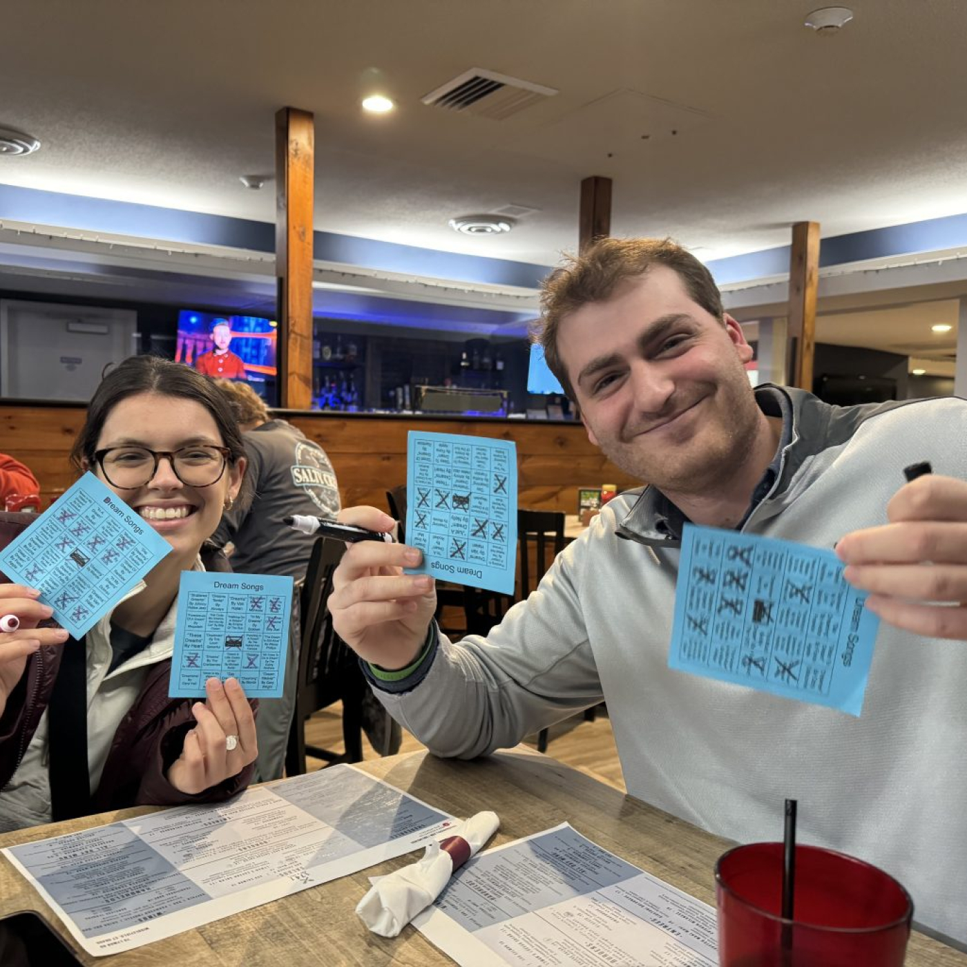 MIXTAPE MATCH, similar al bingo. Pero, en lugar de cantar bolas con letras y números, el presentador toca una canción. Empareja las canciones con las casillas de tu cartón de bingo. ¡Así de fácil!