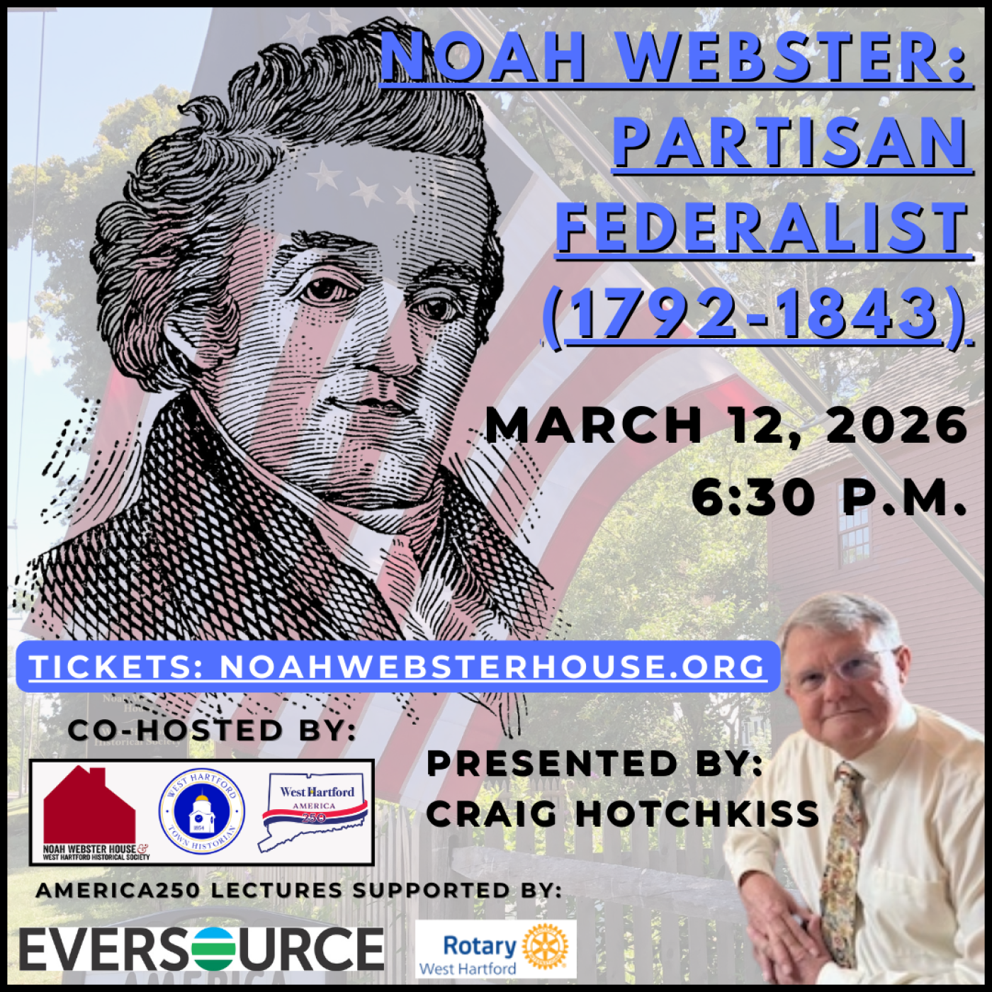 Este programa está organizado conjuntamente por Noah Webster House & West Hartford Historical Society, West Hartford 250 y el Historiador de la ciudad de West Hartford.