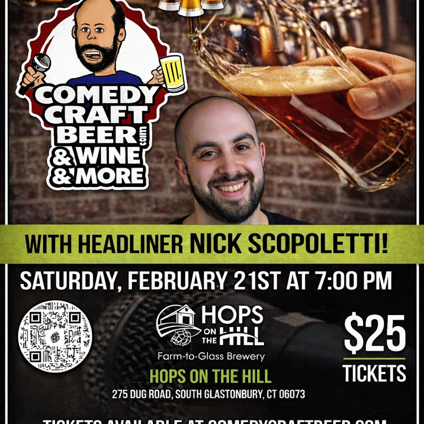 El Comedy Craft Beer Tour lleva lo mejor de la comedia del noreste a cervecerías, bodegas y cualquier otro local que sirva alcohol en Nueva Inglaterra y más allá, para una noche que no parará de beber y reír. Esta gira lleva más de tres años realizando espectáculos en Connecticut, Nueva York, Rhode Island, Massachusetts y Maryland, y cada año suma más locales.