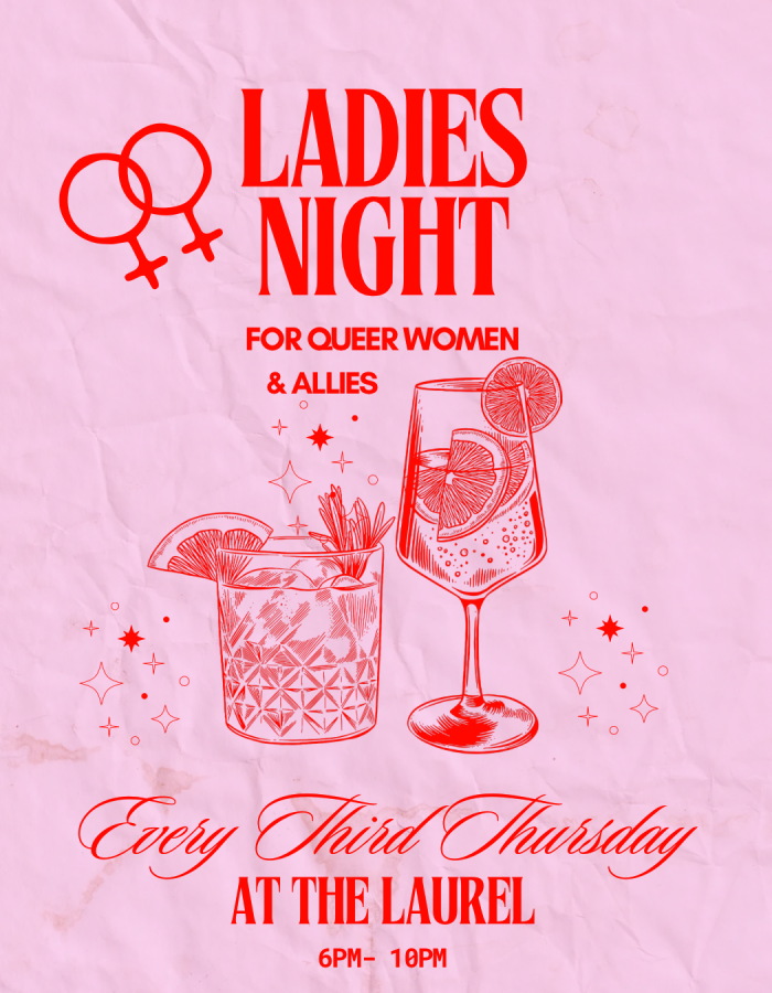 ¡La Noche de Damas en The Laurel, en West Hartford, es para mujeres queer y sus aliadas! Se celebra cada tercer jueves del mes, de 18:00 a 22:00. Se ruega reservar en nuestra página web. ¡Esperamos recibirlas pronto!