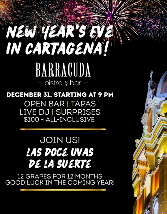 Nochevieja: Fiesta en Cartagena en Barracuda Bistro & Bar