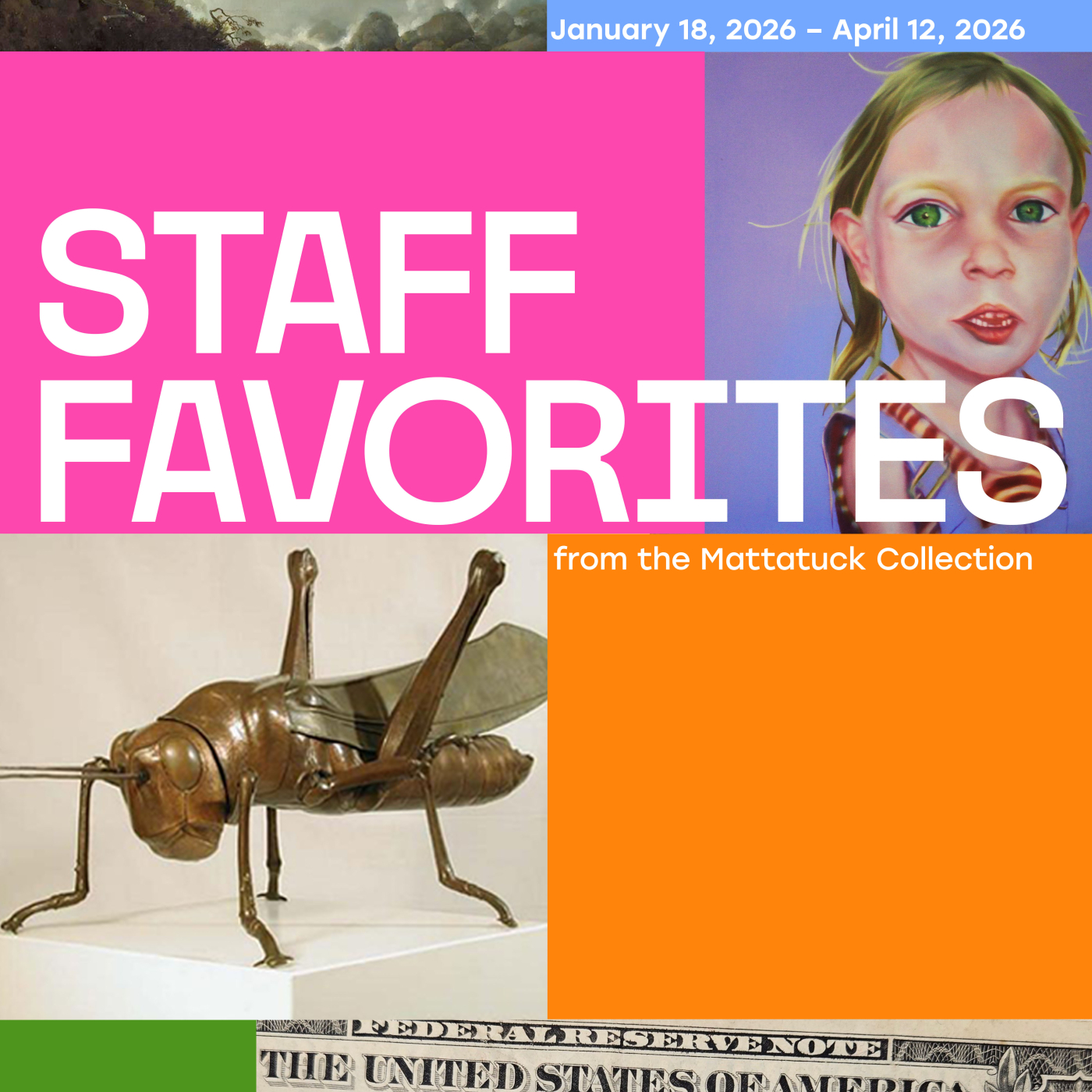 Esta exposición presenta una amplia gama de objetos procedentes íntegramente de la colección del Museo, cada uno seleccionado por un miembro del personal y acompañado de su comentario individual. Con una variedad de pinturas, grabados, objetos históricos y más, «Favoritos del personal de la Colección Mattatuck» rescata del almacén piezas favoritas, tanto antiguas como nuevas. Las descripciones escritas por los miembros del personal aportan perspectivas novedosas a estos objetos y ofrecen una visión de los intereses y opiniones particulares de cada persona.