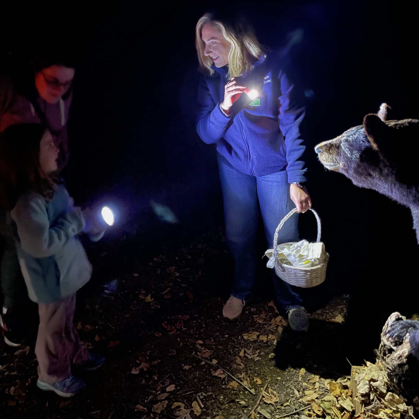Únase a nuestros guías mientras recorre nuestros encantadores bosques y aprende sobre fascinantes animales nocturnos, tanto peludos como emplumados, como zorrillos, mapaches, búhos y zorros. Ponga a prueba sus habilidades de caza nocturna con una serie de actividades para toda la familia. Y disfrute de un descanso a mitad de la caminata junto a nuestra acogedora fogata, donde podrá disfrutar de chocolate caliente recién hecho y deliciosas delicias.