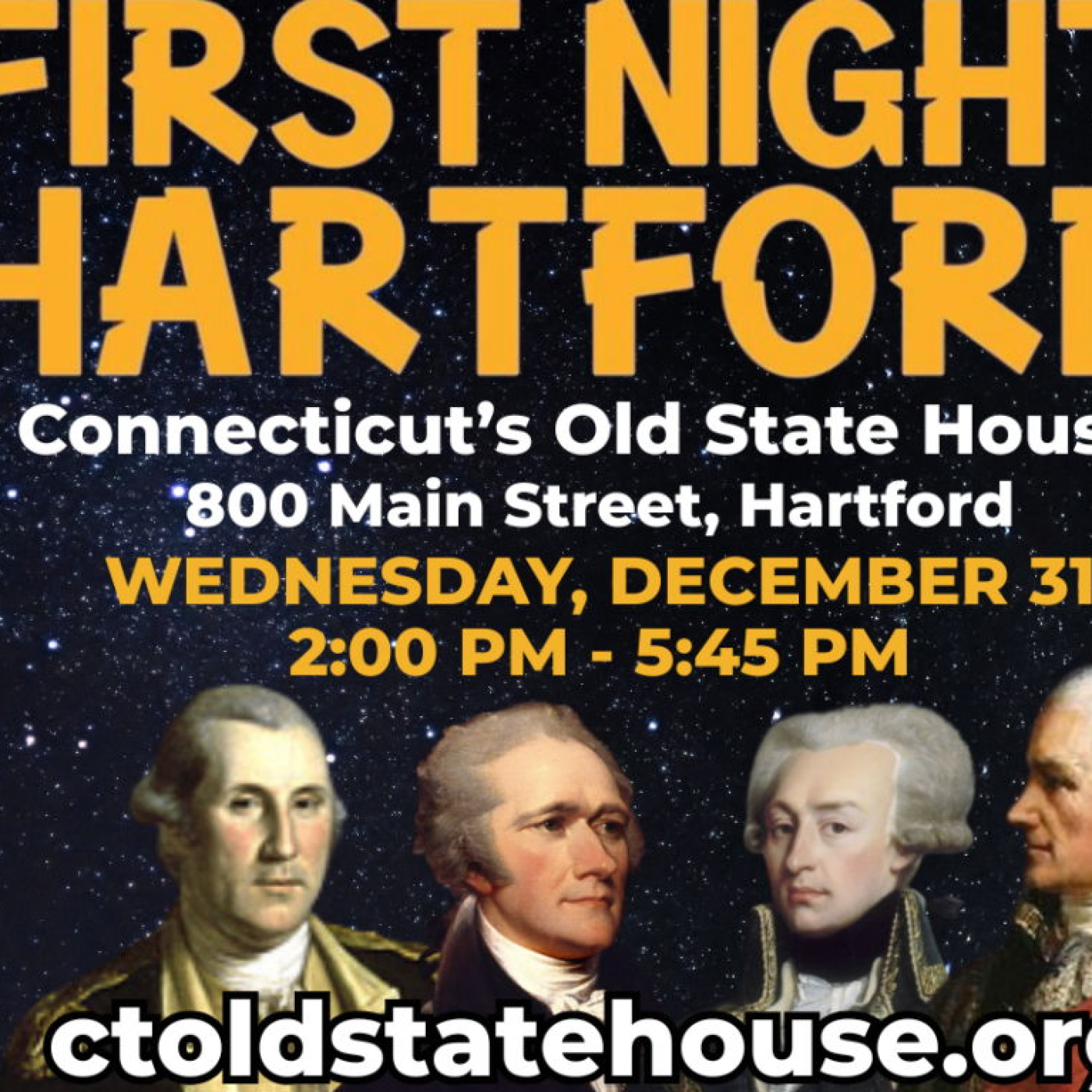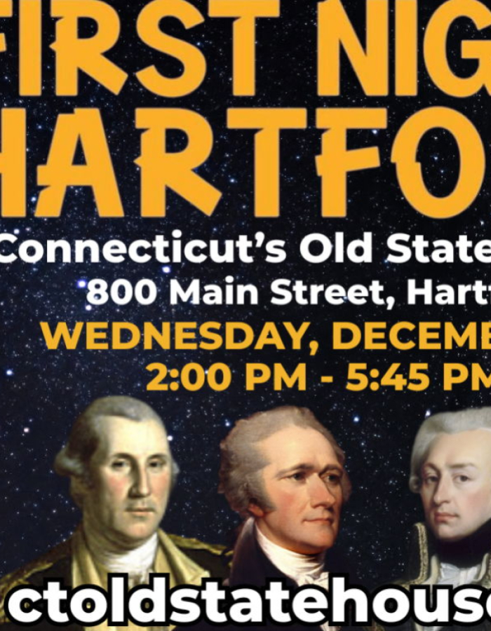 La Antigua Casa del Estado de Connecticut inaugurará el 250.º aniversario de Estados Unidos como parte de las festividades de la Primera Noche en Hartford el miércoles 31 de diciembre. Quienes tengan un pin de la Primera Noche están invitados a visitar el museo entre las 14:00 y las 17:45 para disfrutar de actividades familiares relacionadas con la Guerra de la Independencia. Monumento histórico nacional, la Antigua Casa del Estado de Connecticut se encuentra en el número 800 de Main Street, a pocos pasos del Parque Bushnell, para quienes deseen presenciar el primer espectáculo de fuegos artificiales a las 18:00.
