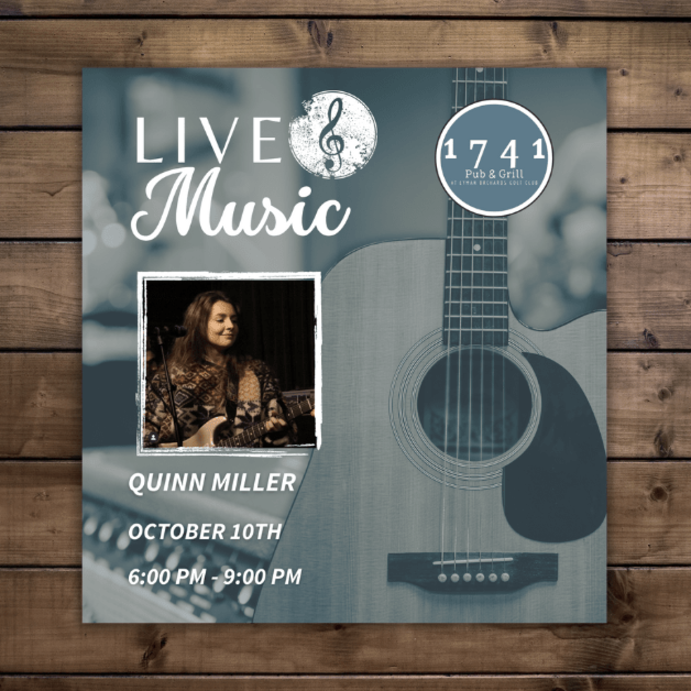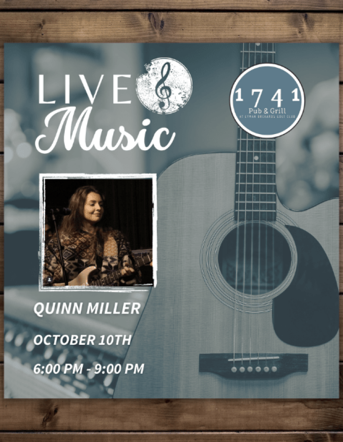 ¡Únase a nosotros para disfrutar de música en vivo, excelente comida y bebidas en 1741 Pub & Grill los viernes por la noche de octubre! El 10 de octubre, Quinn Miller tocará de 18:00 a 21:00.