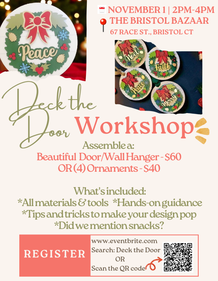 ¡Únase a nosotros para un divertido y festivo taller de decoración de puertas en The Bristol Bazaar!