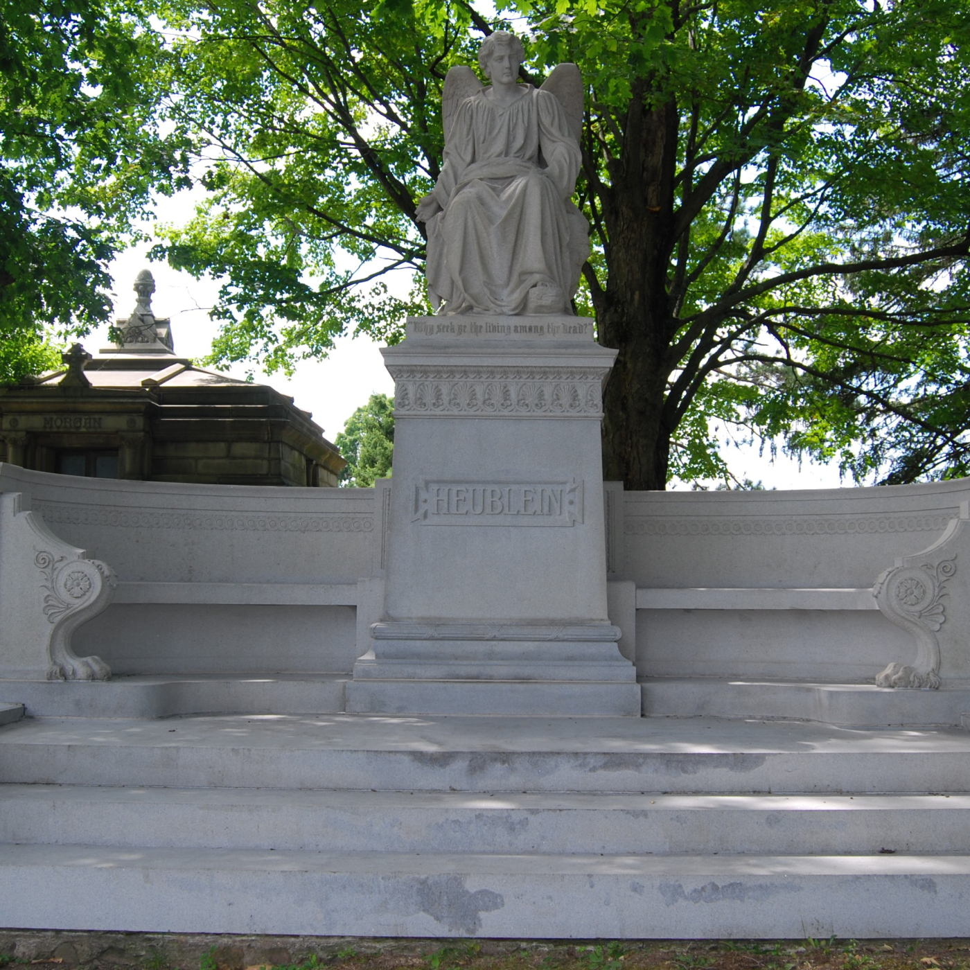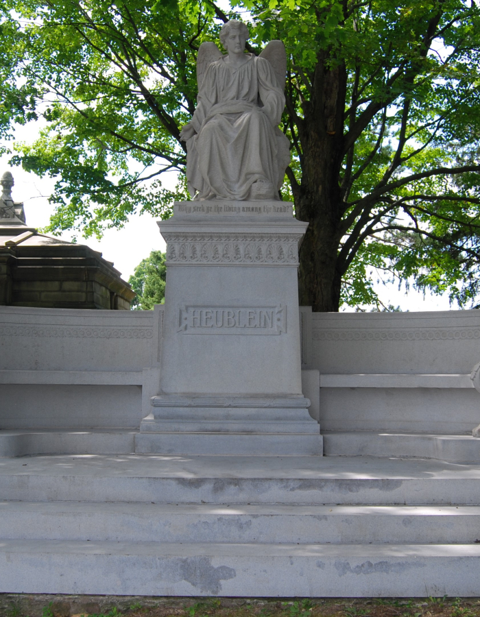 Los monumentos atribuidos a la prolífica empresa de granito de James Batterson están dispersos por todo el cementerio de Cedar Hill.