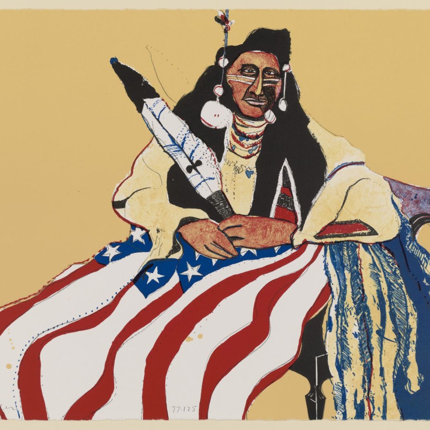Sobre la exposición: Esta exposición examina representaciones de la bandera estadounidense a través de más de 70 obras de un grupo diverso de artistas, desde la Primera Guerra Mundial con el Día Italiano de mayo de 1918 de Childe Hassam hasta la actualidad, incluyendo una escultura textil encargada para la muestra a Maria de Los Ángeles. La exposición incluye obras en diversos medios de artistas como Jasper Johns, Faith Ringgold, Robert Rauschenberg, Shepard Fairey y Julie Mehretu, y desafía al público a reflexionar sobre a quién representa realmente la bandera estadounidense y si la justicia es universal.