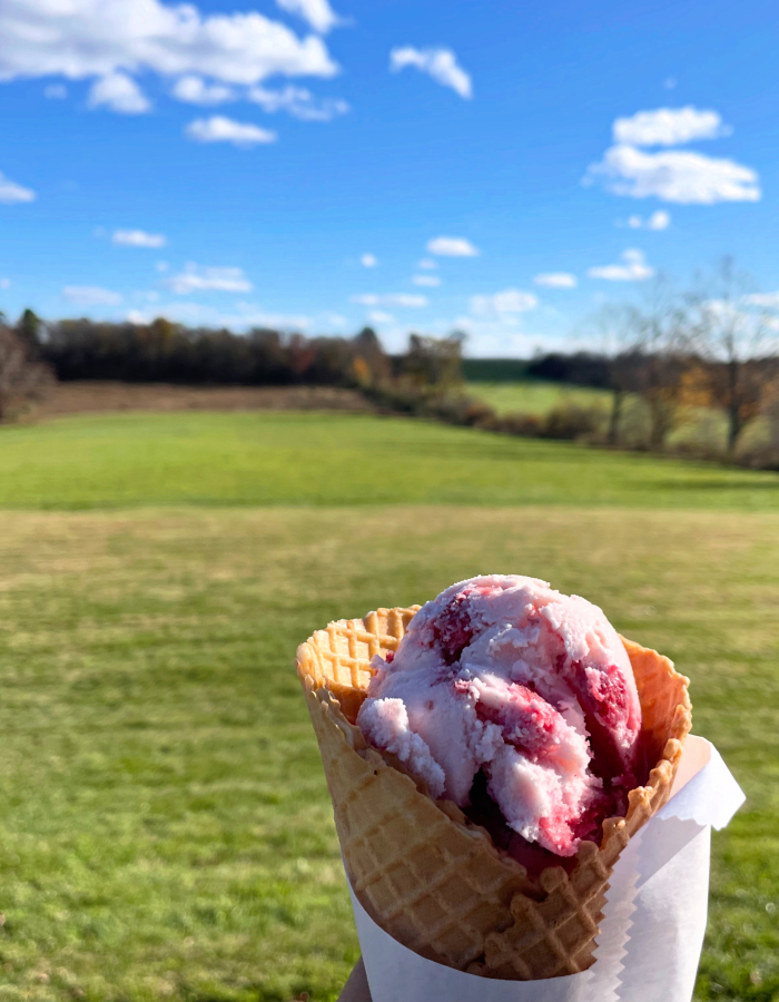 De la vaca al cono, Mountain Dairy se enorgullece de compartir el siguiente paso en nuestra tradición de la granja a la mesa: helados ricos y cremosos elaborados aquí mismo, en nuestra granja familiar, con ingredientes totalmente naturales y leche fresca de nuestras propias vacas. Elaborados en pequeños lotes en nuestra lechería, ubicada en 483 Browns Road, nuestro helado refleja generaciones de gestión lechera y un compromiso con ingredientes sencillos y honestos. Al visitarnos, entre por la puerta lateral y mire directamente a nuestra sala de elaboración de helados, donde una ventana le permitirá observar el proceso y experimentar cómo nuestro helado pasa de la leche fresca de granja a su bola favorita.