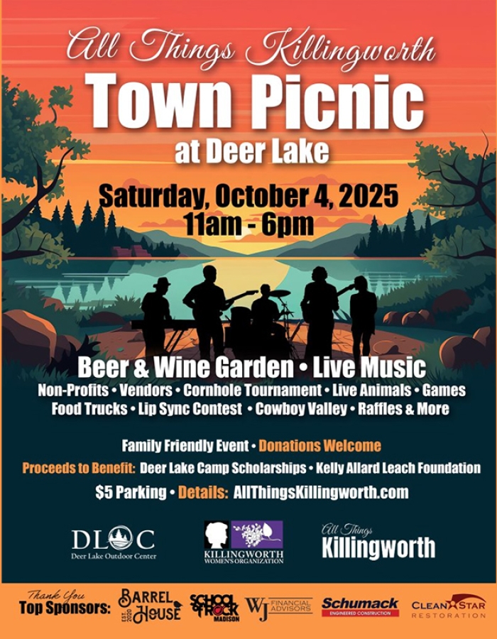 The All Things Killingworth Town Picnic at Deer Lake Outdoor Center returns Saturday, October 4th with a jam-packed day of entertainment, food, vendors, and family fun — all while raising funds for two important local causes. From the magical Sanderson Sisters of Hocus Pocus to a nostalgic Cowboy Valley Tribute, a bubble-filled adventure, live bands, and contests galore, this year’s picnic promises to be the best yet.