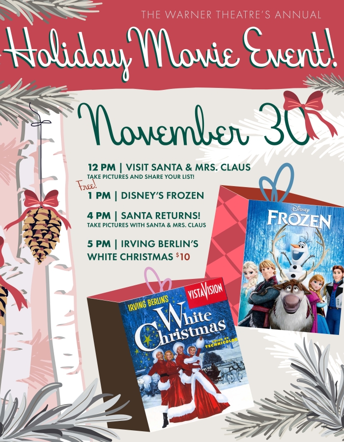 Kick off the holiday season with the Annual Warner Theatre Holiday Movie Event on November 30!