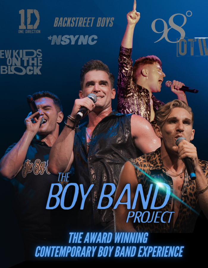 The Boy Band Project is the ULTIMATE boy band experience with all the moves, music, and magic of your favorite MILLENNIAL boy bands and beyond. Expertly performed by four guys direct from Broadway, the show features the music of NSYNC, Backstreet Boys, 98 Degrees, One Direction, Jonas Brothers, The Beach Boys, and more!
