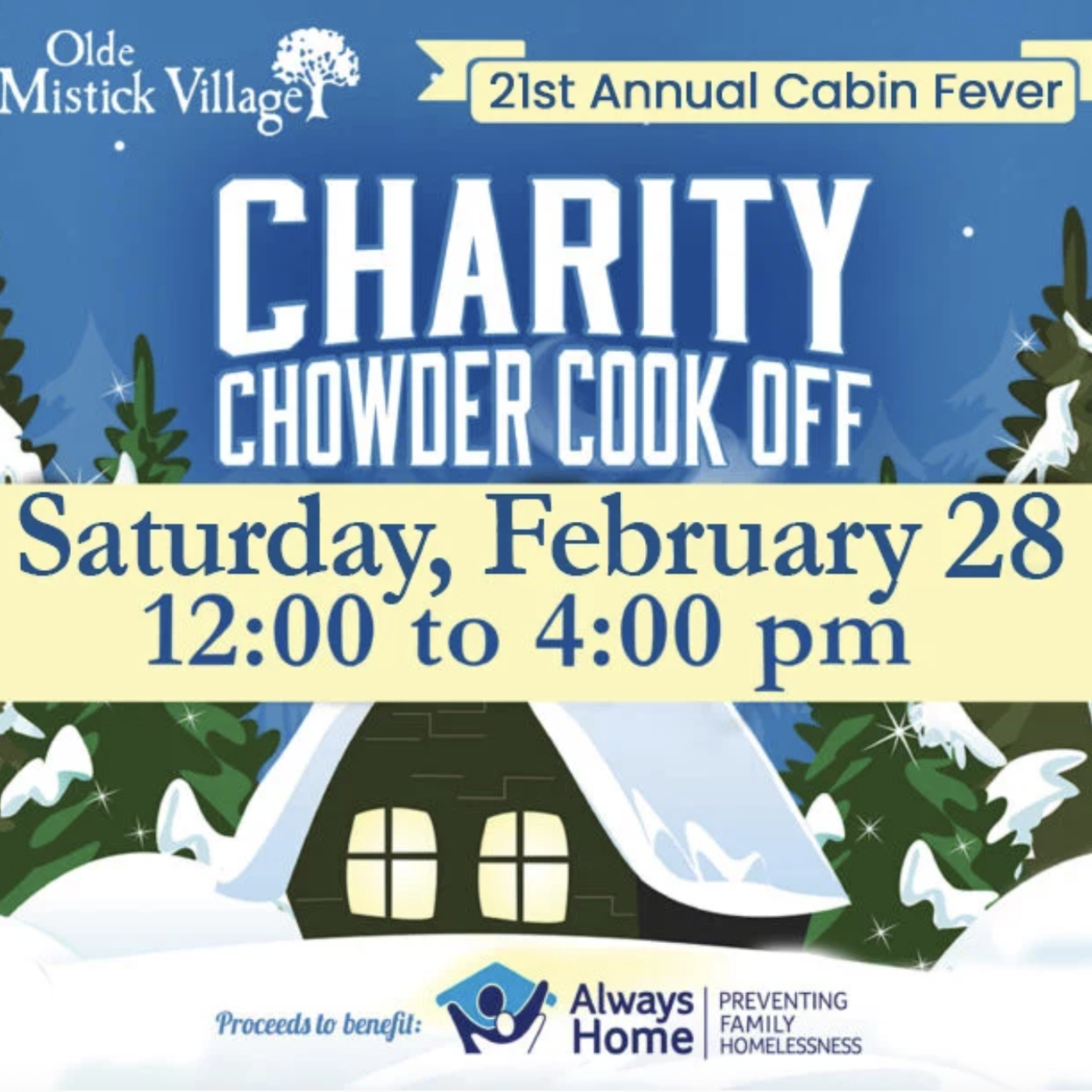 The popular annual Cabin Fever Charity Chowder Cook Off returns to Olde Mistick Village on Saturday, February 28th, 2026 from 12:00 to 4:00 pm