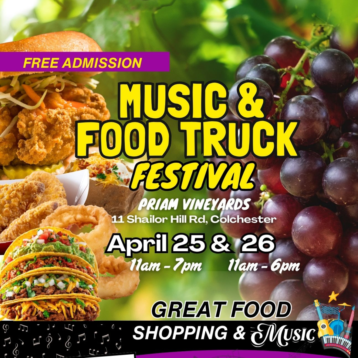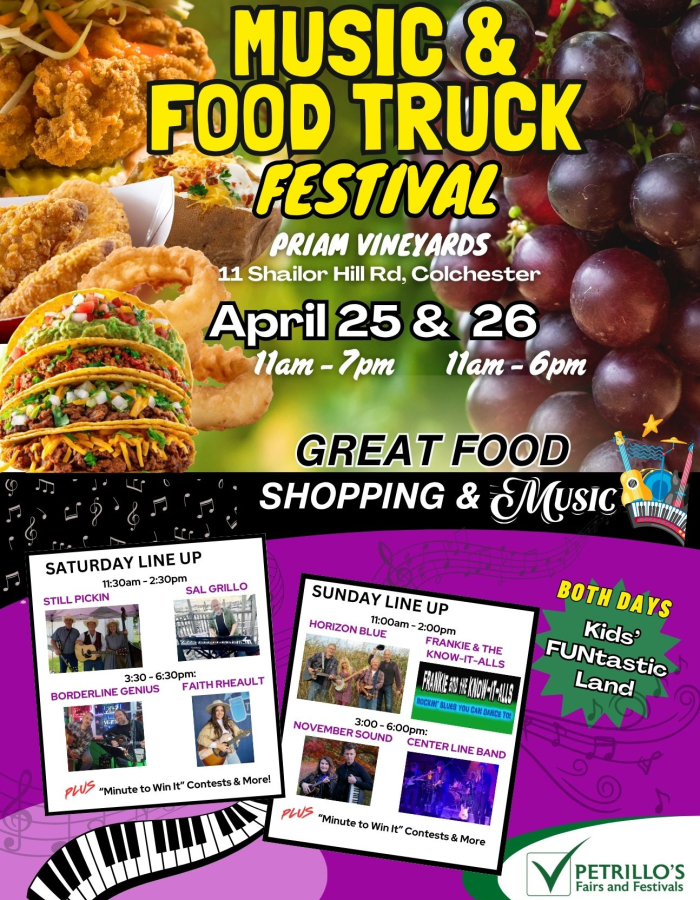 The 2nd Annual Colchester Food & Music Festival is taking over Priam Vineyards for TWO massive days packed with incredible eats, live entertainment, and high-energy fun — all set against the beautiful backdrop of the vineyard.