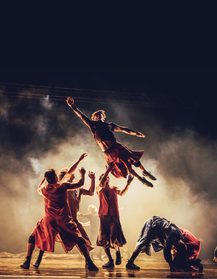 Reigning from France, Algeria, and beyond, this unique, fearless, powerful company combines contemporary and urban dance movements, capoeira, and martial arts with powerful imagery and inspired choreography. In Sol Invictus, a fervent ode to the unifying power of dance in a turbulent world, seventeen male and female dancers operate as a tight-knit collective. The luminous ballet mixes hip-hop physicality and classic elevation with aerial style. Through beauty and grace, Koubi declares his love towards dance; to its past, to its present, and to its future.