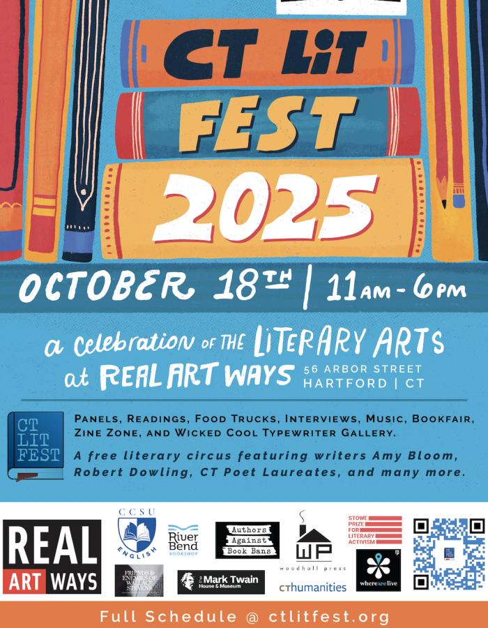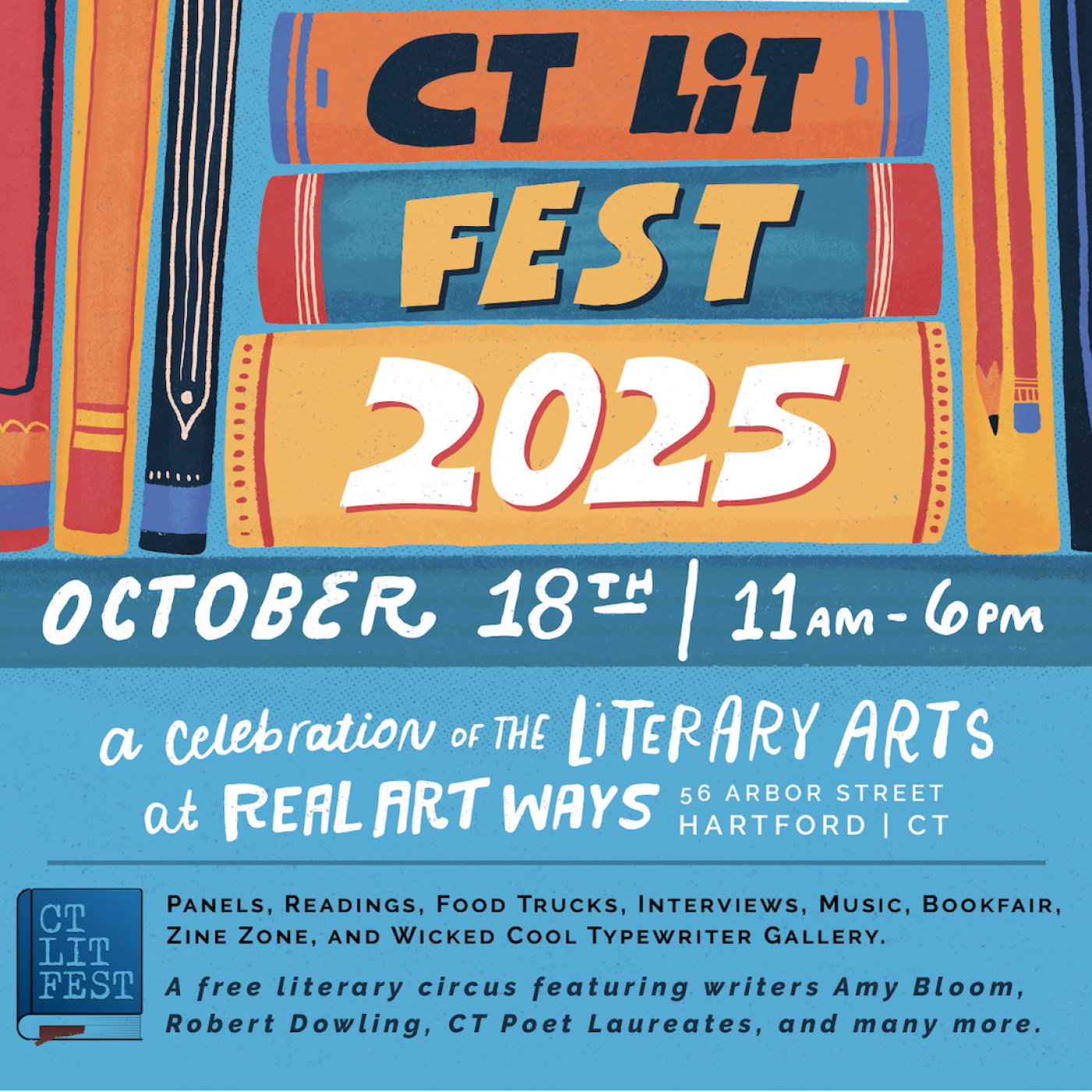 CT Lit Fest is a fall book festival co-presented by Real Art Ways. A literary hub under one roof, at the center of Connecticut. A day for writers, poets, teachers, students, and readers to discover and connect with new voices. Events run throughout the day. Admission is free.