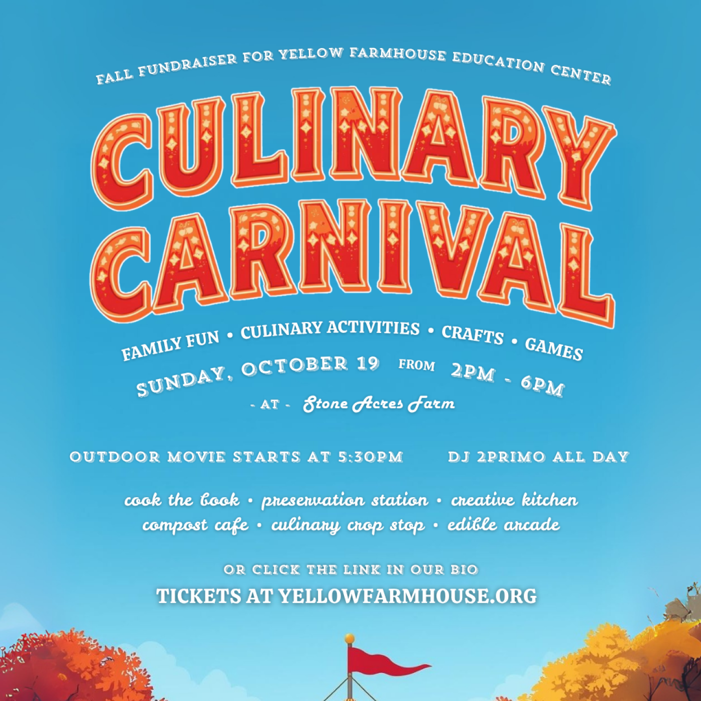 Whether you're a future farmer, fearless foodie, or just here for the fun, the Culinary Carnival is the perfect way to connect with where your food comes from—and support our work bringing food and farm education to schools and communities.