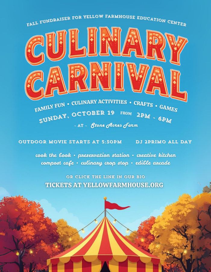 Join us for an unforgettable day of food and fun at the first annual Culinary Carnival, a playful celebration of local food and farming! Designed with kids in mind (but just as fun for grown-ups), this one-of-a-kind event turns our fields into a vibrant carnival of culinary discovery.