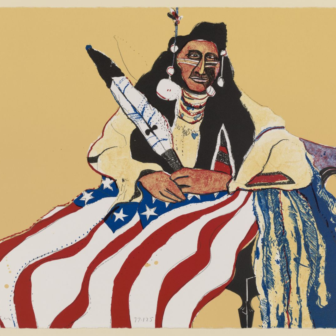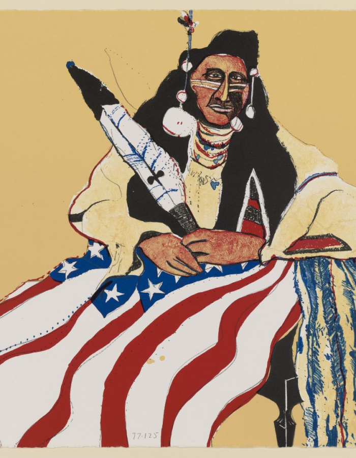 About the exhibition: This exhibition examines depictions of the American flag through 70+ works by a diverse group of artists, beginning during WWI with Childe Hassam’s Italian Day, May 1918 and continuing to the present day, including a textile sculpture commissioned for the show from Maria de Los Angeles. The exhibition includes work in a variety of media by artists including Jasper Johns, Faith Ringgold, Robert Rauschenberg, Shepard Fairey, and Julie Mehretu, and challenges viewers to consider who the American flag truly represents and whether justice is available to all.