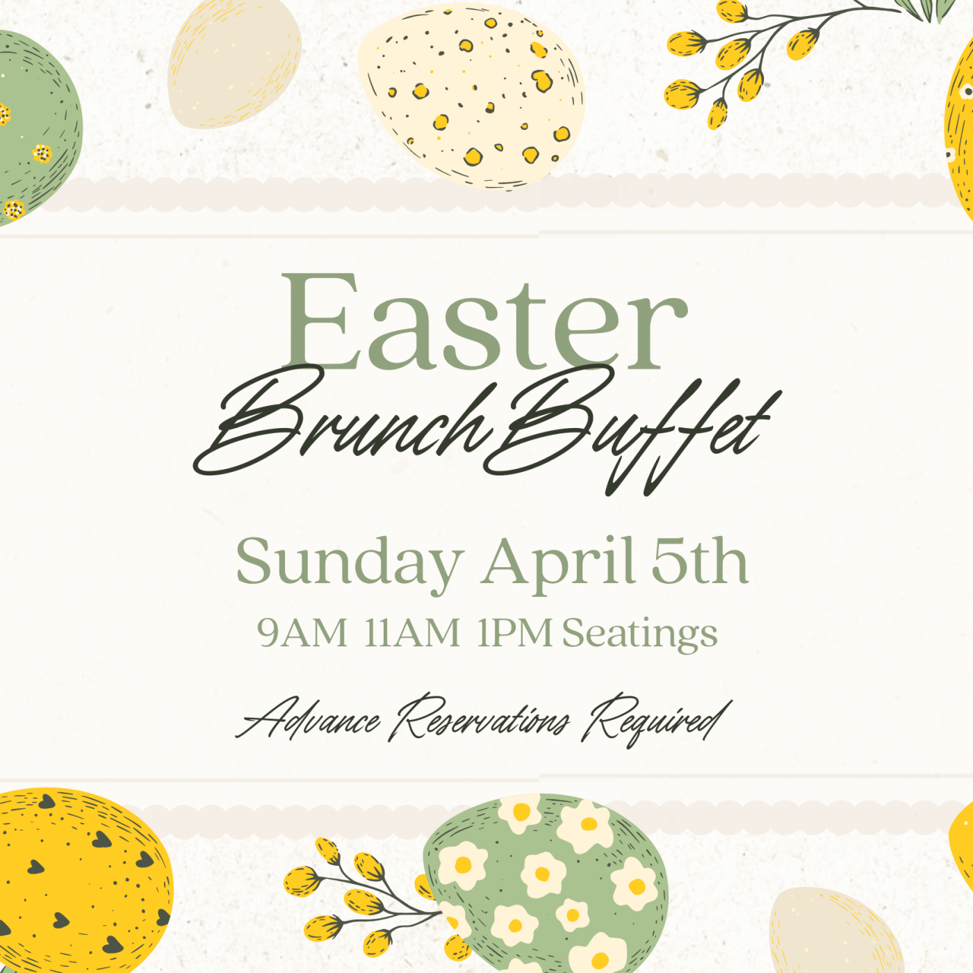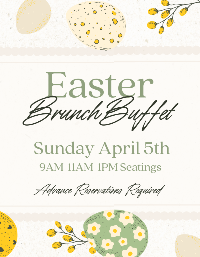Celebrate Easter at 1741 Pub & Grill for an Easter brunch buffet! Seatings will be at 9 AM, 11 AM & 1 PM on Sunday, April 5th. Reservations must be made in advance.