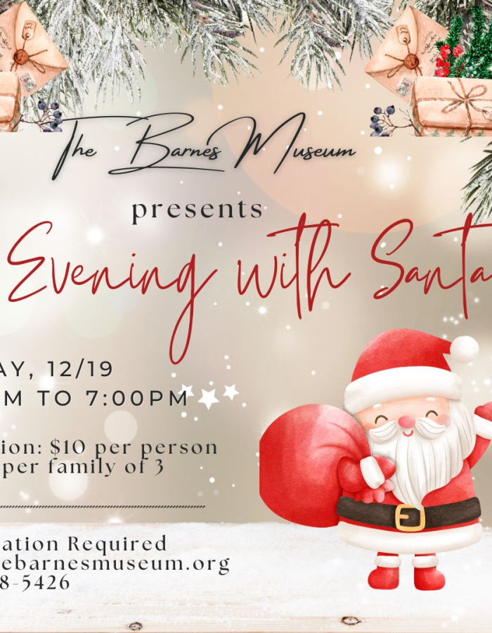 Join us for a magical holiday experience at the Barnes Museum's "An Evening with Santa" on Friday, December 19th, at 5:00 PM! 🎅✨