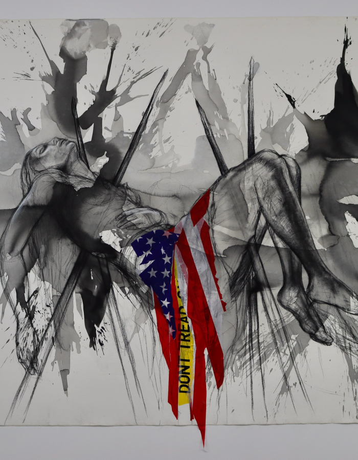 About the exhibition: This exhibition examines depictions of the American flag through 70+ works by a diverse group of artists, beginning during WWI with Childe Hassam’s Italian Day, May 1918 and continuing to the present day, including a textile sculpture commissioned for the show from Maria de Los Angeles. The exhibition includes work in a variety of media by artists including Jasper Johns, Faith Ringgold, Robert Rauschenberg, Shepard Fairey, and Julie Mehretu, and challenges viewers to consider who the American flag truly represents and whether justice is available to all.