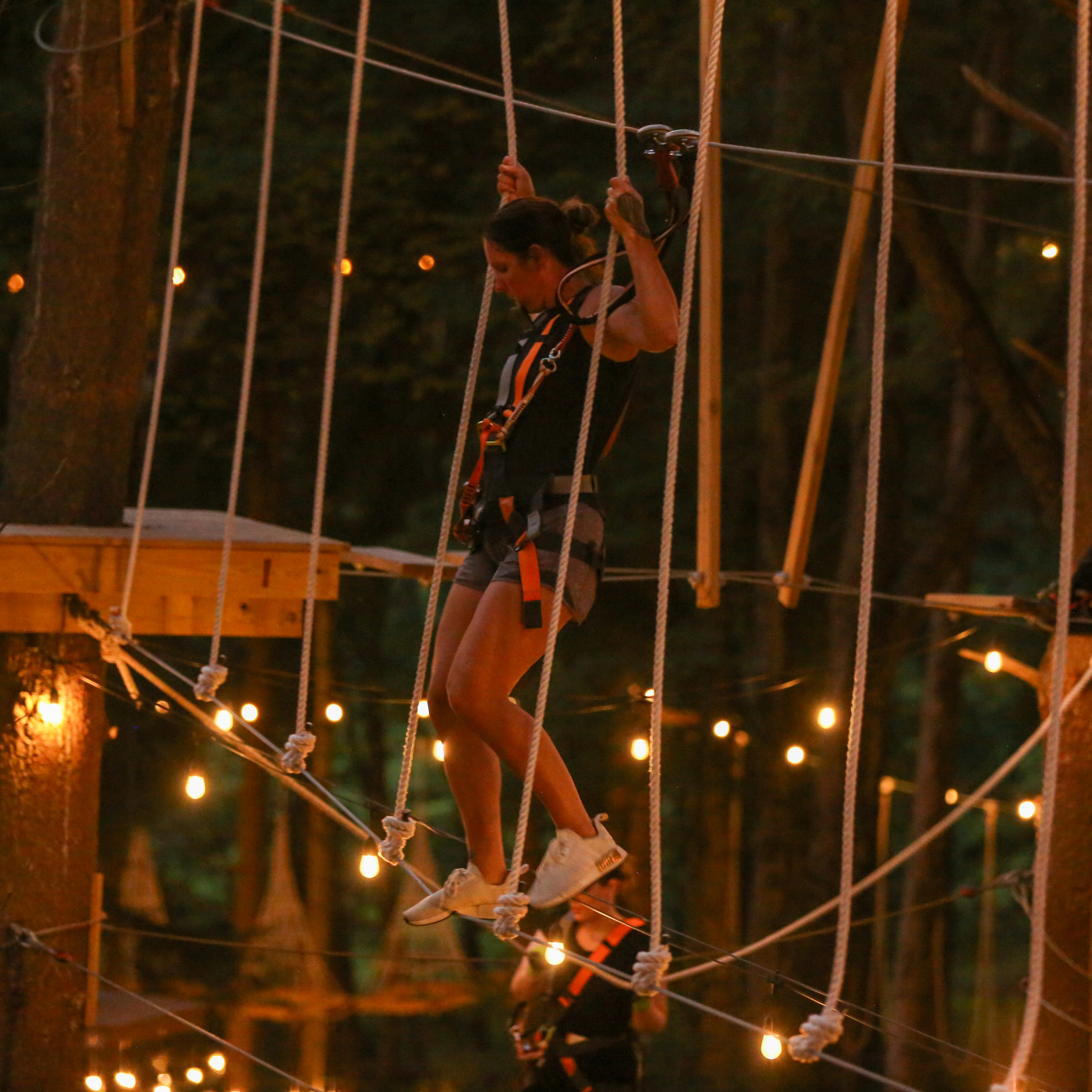 As the sun goes down, the lights come up and the Park becomes a glimmering fairy land. We even provide cool glow bracelets and necklaces so you can create your own glow look. Listen to music and dance as you climb. Don’t miss the magic of TreeTrails at night. (Midway through June, look for an additional night of glowing fun!)