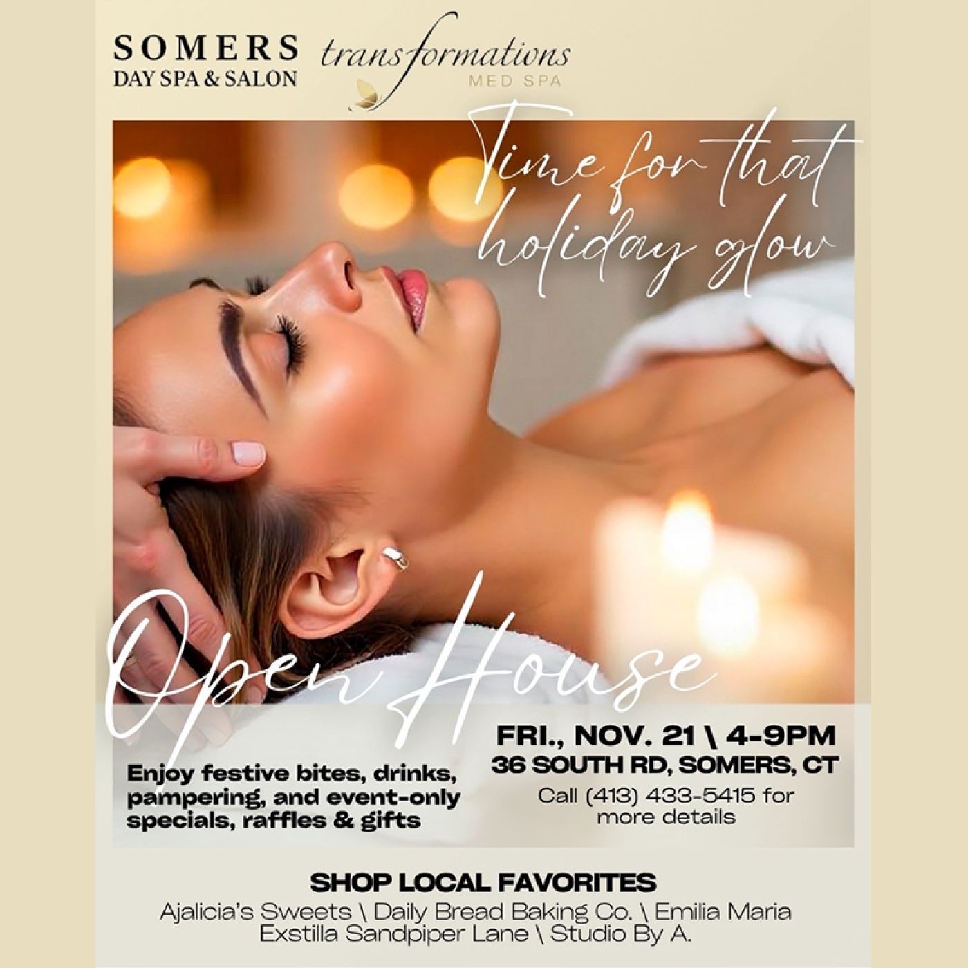 You’re Invited! Holiday Self-Care & Shopping Night at Somers Day Spa & Transformations Med Spa.