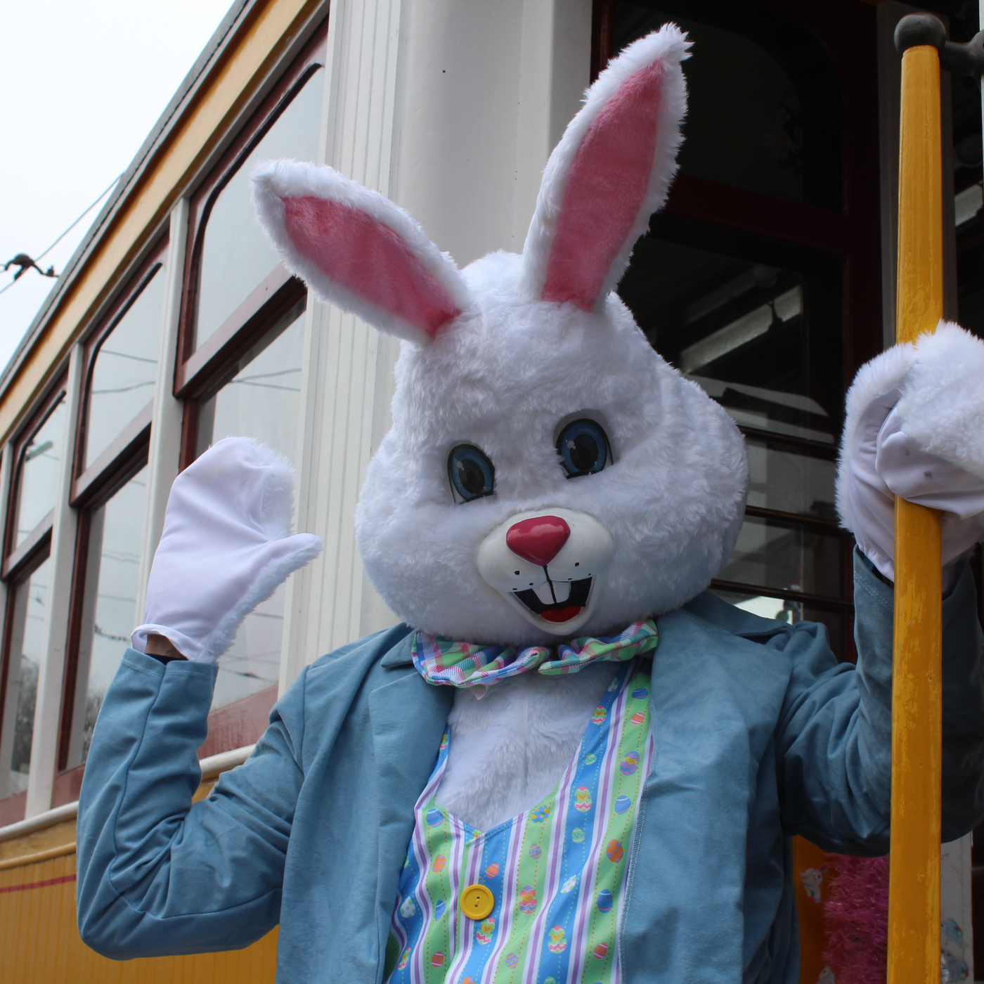 Travel aboard a beautifully restored electric railway car to meet the Easter Bunny.