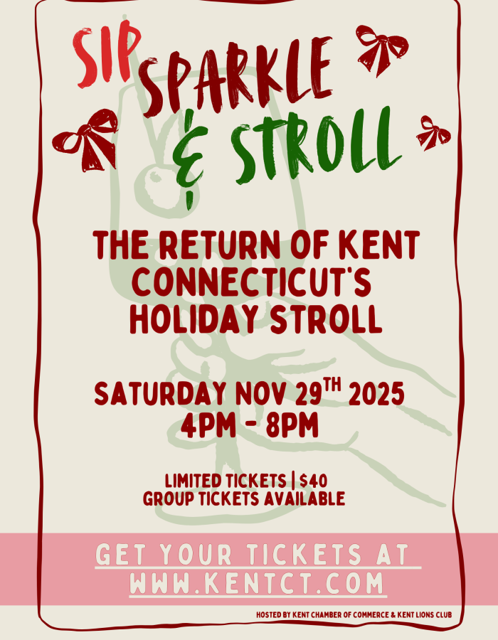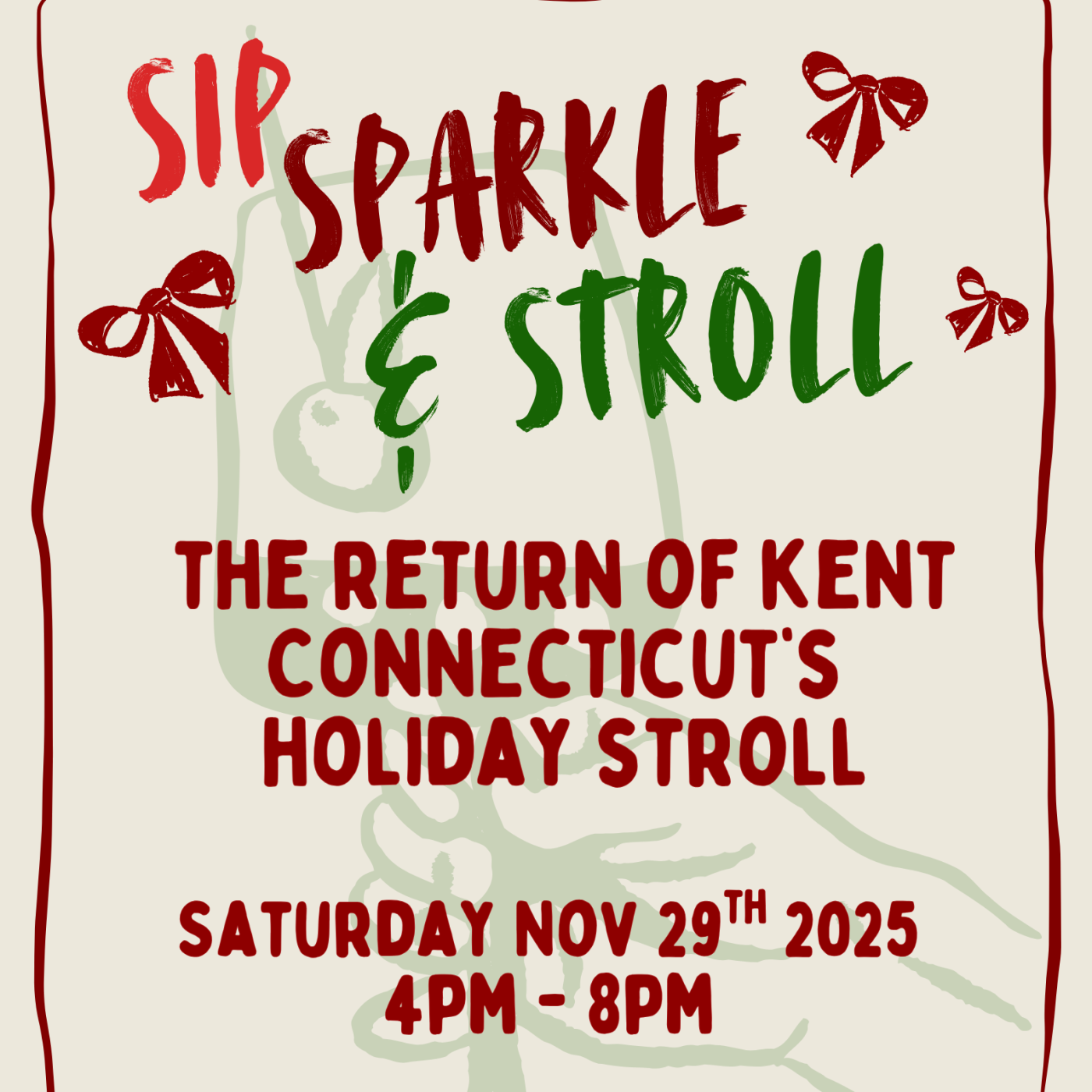 After six sparkling years away, the beloved Sip, Sparkle & Stroll returns Saturday, November 29, 2025, from 4–8 PM in downtown Kent, CT.