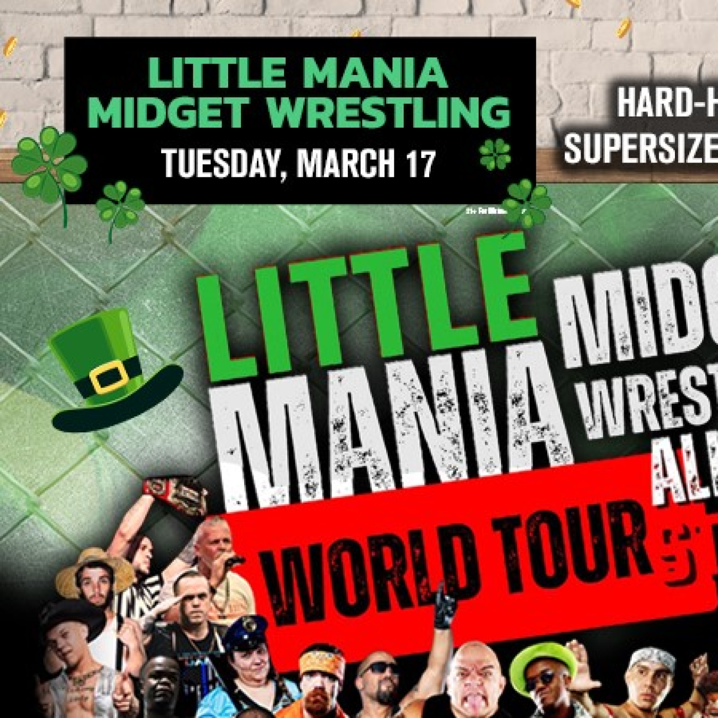 Get ready to kiss subtlety goodbye and raise a green beer to absolute chaos—because LITTLE MANIA MIDGET WRESTLING is crashing St. Patrick’s Day at Comix Roadhouse like a flying elbow off the top rope. This is not your grandpa’s wrestling show. LITTLE MANIA MIDGET WRESTLING is a nationally touring, no-holds-barred spectacle featuring the most fearless, athletic, and outrageously entertaining little wrestlers in the game. Expect jaw-dropping slams, lightning-fast suplexes, wild personalities, and crowd interaction that blurs the line between spectator and accomplice. The characters are larger than life, the hits are real, and the energy is cranked to “call-out-of-work-tomorrow” levels. Whether you’re a lifelong wrestling junkie or just here for the insanity, this show delivers pure, unfiltered mayhem with zero apologies.