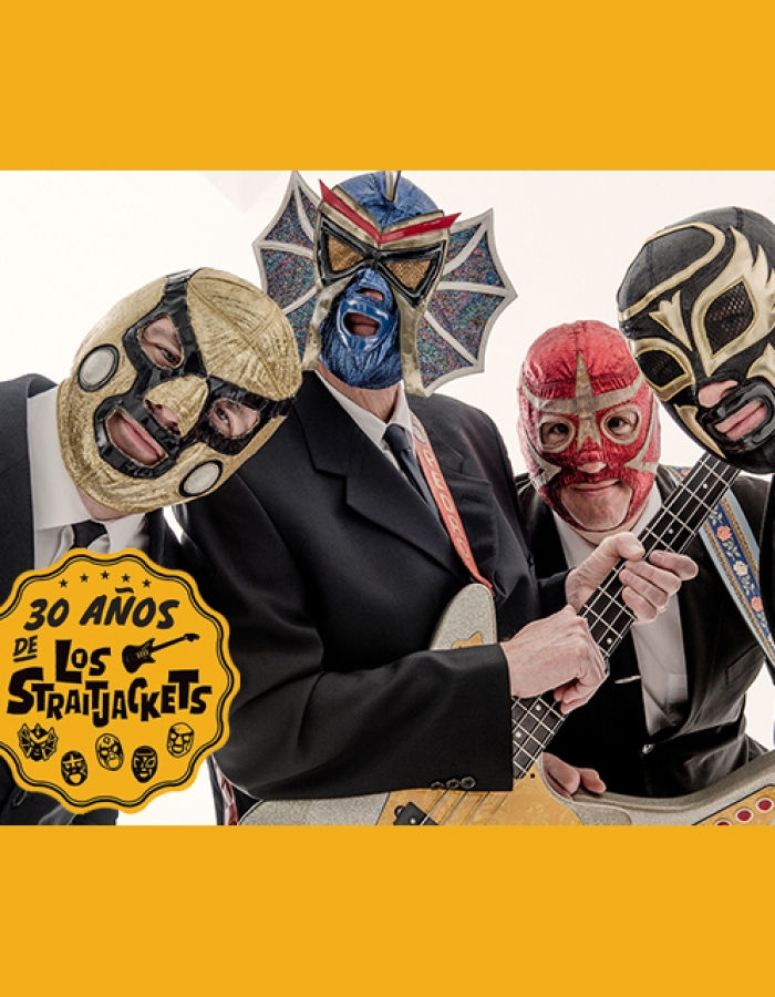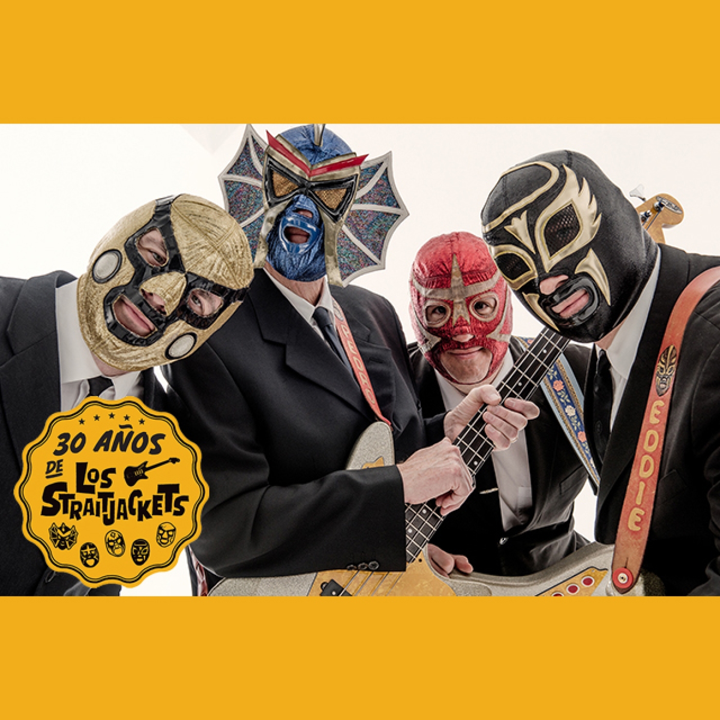 Los Straitjackets are the leading practitioners of the lost art of the guitar instrumental. Using the music of the Ventures, The Shadows, and with Link Wray and Dick Dale as a jumping off point, the band has taken their unique, high energy brand of original rock & roll around the world. Clad in their trademark Lucha Libre Mexican wrestling masks, the “Jackets” have delivered their trademark guitar licks to 16 albums, thousands of concerts and dozens of films and TV shows.