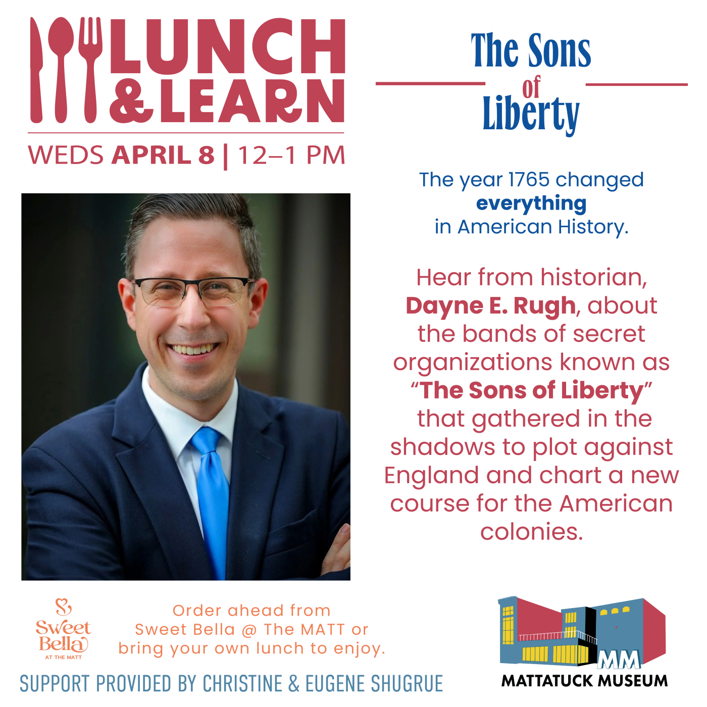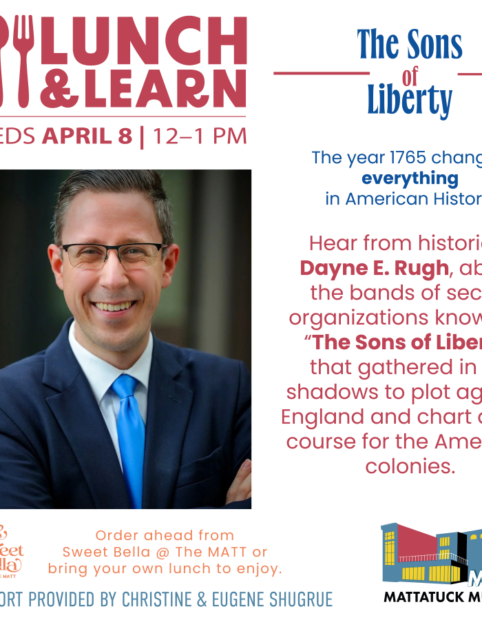 Join us for a delightful afternoon of good food and engaging conversations about local art and history! Order ahead from Sweet Bella @ The MATT or bring your own lunch to enjoy.