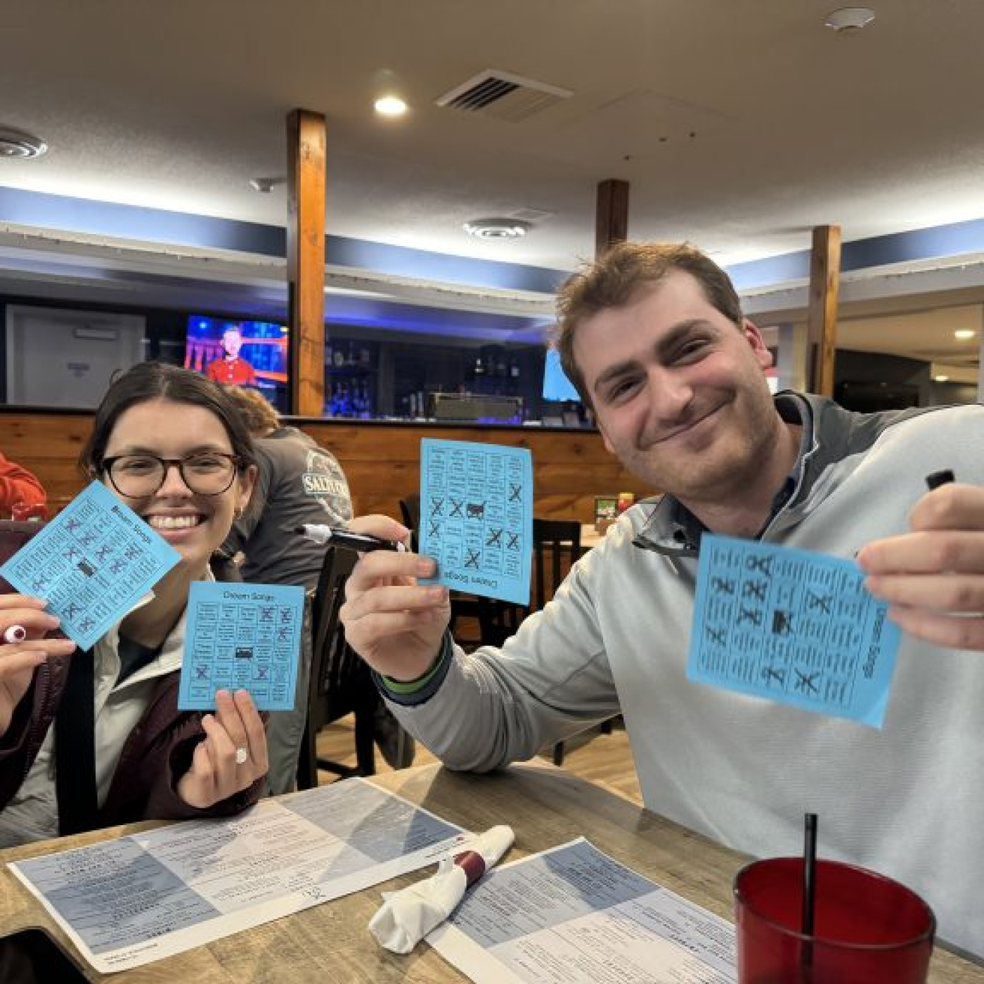 Think BINGO, but way more fun. Instead of numbers being called, your DJ plays a song! If it's on your card, mark it off. No music expertise required. Just good vibes and a love for great tunes.